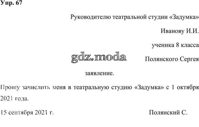 ОТВЕТ на задание № 67 Учебник по Русскому языку 8 класс Быстрова Инновационная школа