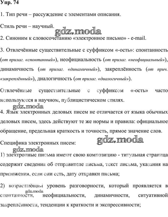 ОТВЕТ на задание № 74 Учебник по Русскому языку 8 класс Быстрова Инновационная школа
