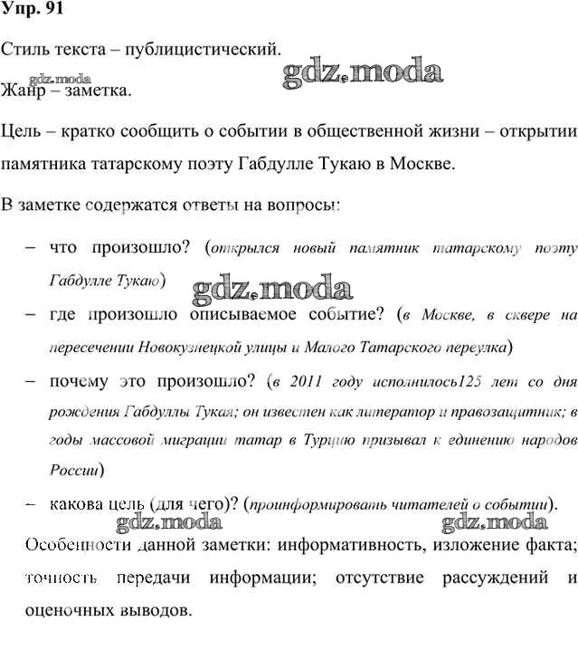 ОТВЕТ на задание № 91 Учебник по Русскому языку 8 класс Быстрова Инновационная школа