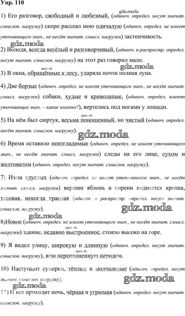 ОТВЕТ на задание № 110 Учебник по Русскому языку 8 класс Быстрова Инновационная школа