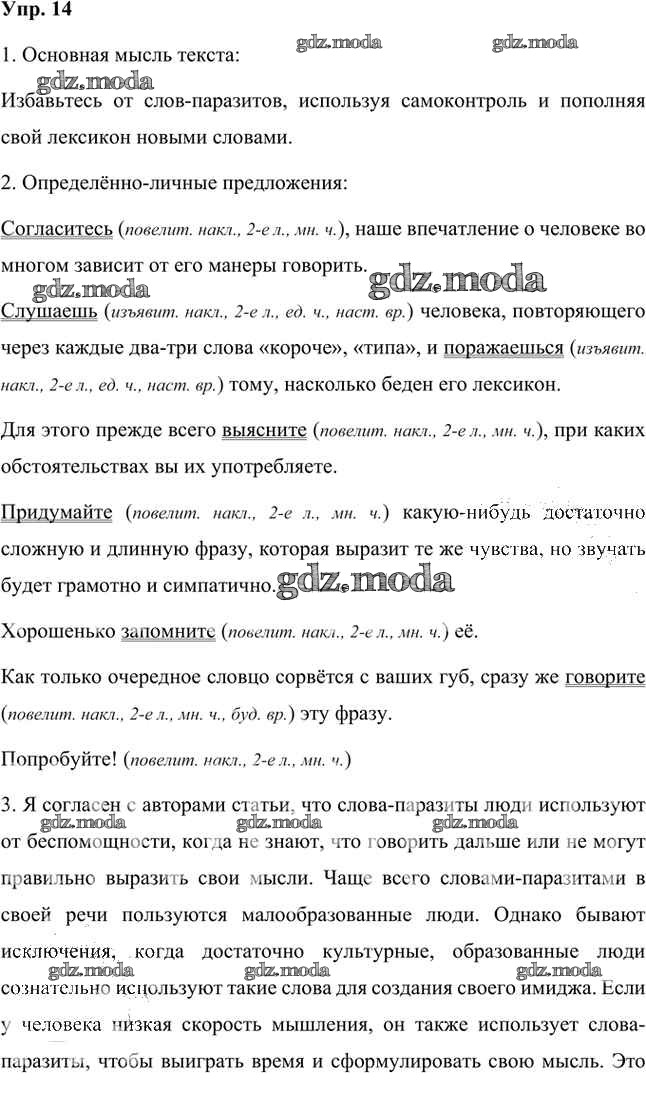 ГДЗ решение к заданию № 14 Русский язык 8 класс Быстрова Е.А. Русское слово 2019 Часть 1, Часть 2 ФГОС бесплатно на гдз.мода!