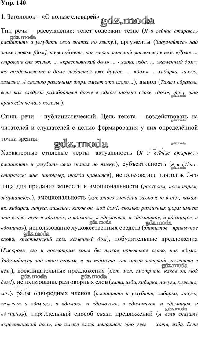 ОТВЕТ на задание № 140 Учебник по Русскому языку 8 класс Быстрова Инновационная школа
