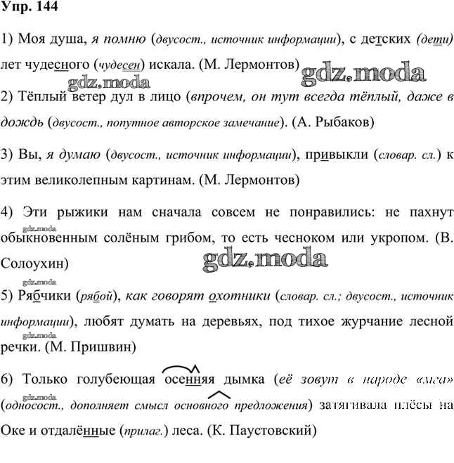 ГДЗ решение к заданию № 144 Русский язык 8 класс Быстрова Е.А. Русское слово 2019 Часть 1, Часть 2 ФГОС бесплатно на гдз.мода!