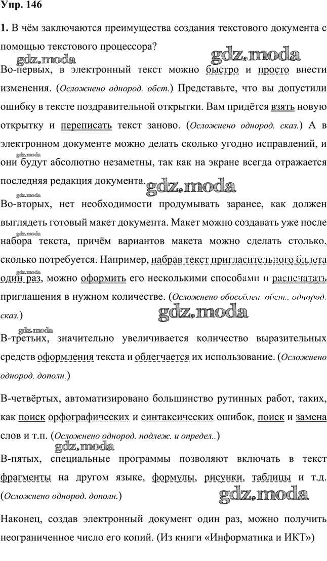 ОТВЕТ на задание № 146 Учебник по Русскому языку 8 класс Быстрова Инновационная школа
