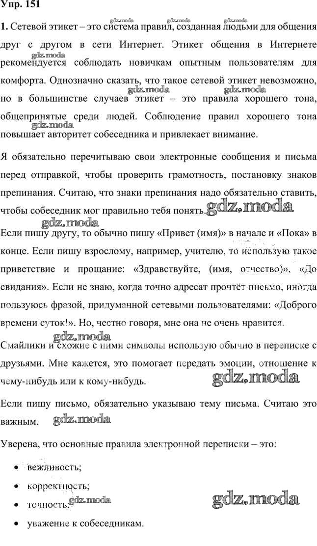 ОТВЕТ на задание № 151 Учебник по Русскому языку 8 класс Быстрова Инновационная школа