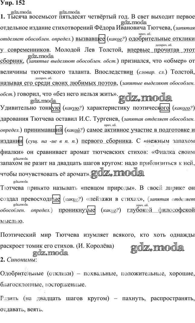 ГДЗ решение к заданию № 152 Русский язык 8 класс Быстрова Е.А. Русское слово 2019 Часть 1, Часть 2 ФГОС бесплатно на гдз.мода!