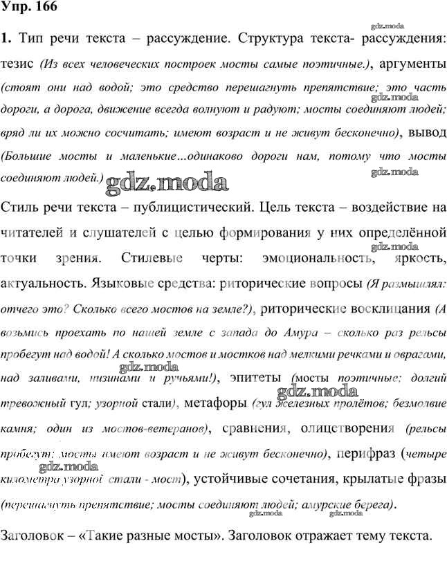 ОТВЕТ на задание № 166 Учебник по Русскому языку 8 класс Быстрова Инновационная школа