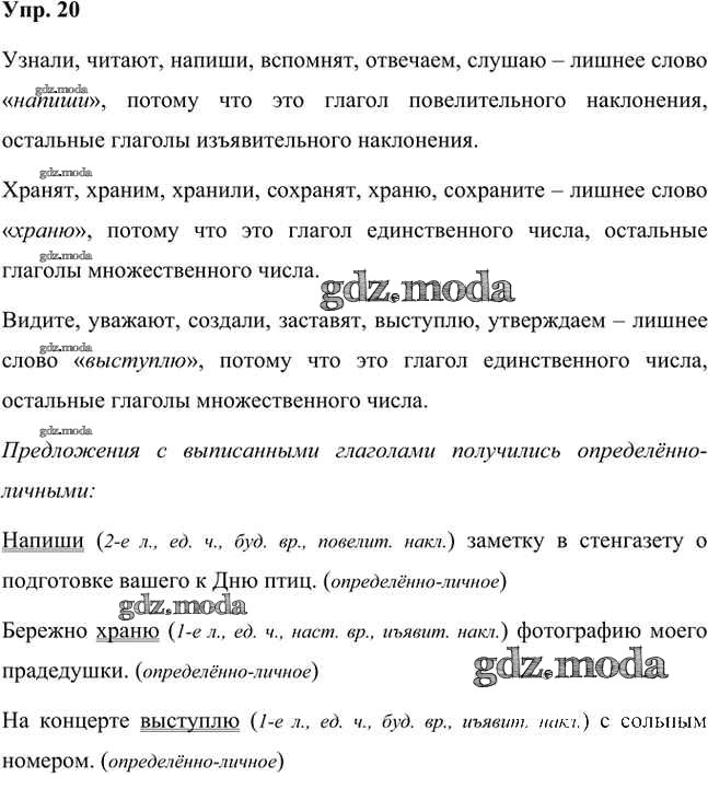 ГДЗ решение к заданию № 20 Русский язык 8 класс Быстрова Е.А. Русское слово 2019 Часть 1, Часть 2 ФГОС бесплатно на гдз.мода!