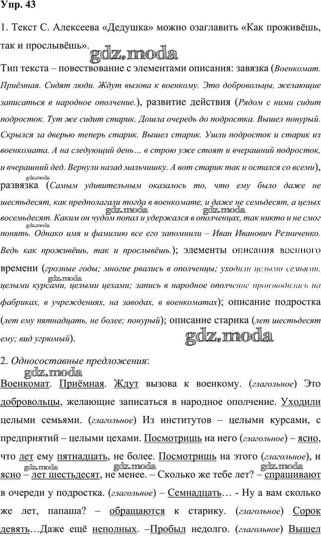 ГДЗ решение к заданию № 43 Русский язык 8 класс Быстрова Е.А. Русское слово 2019 Часть 1, Часть 2 ФГОС бесплатно на гдз.мода!