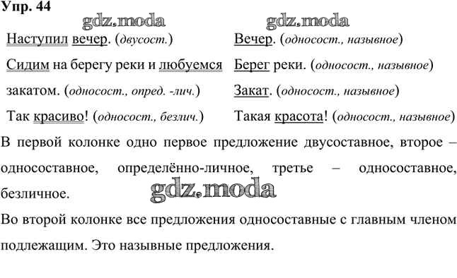 ГДЗ решение к заданию № 44 Русский язык 8 класс Быстрова Е.А. Русское слово 2019 Часть 1, Часть 2 ФГОС бесплатно на гдз.мода!