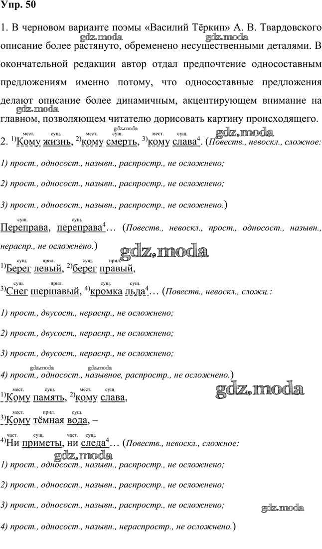 ГДЗ решение к заданию № 50 Русский язык 8 класс Быстрова Е.А. Русское слово 2019 Часть 1, Часть 2 ФГОС бесплатно на гдз.мода!