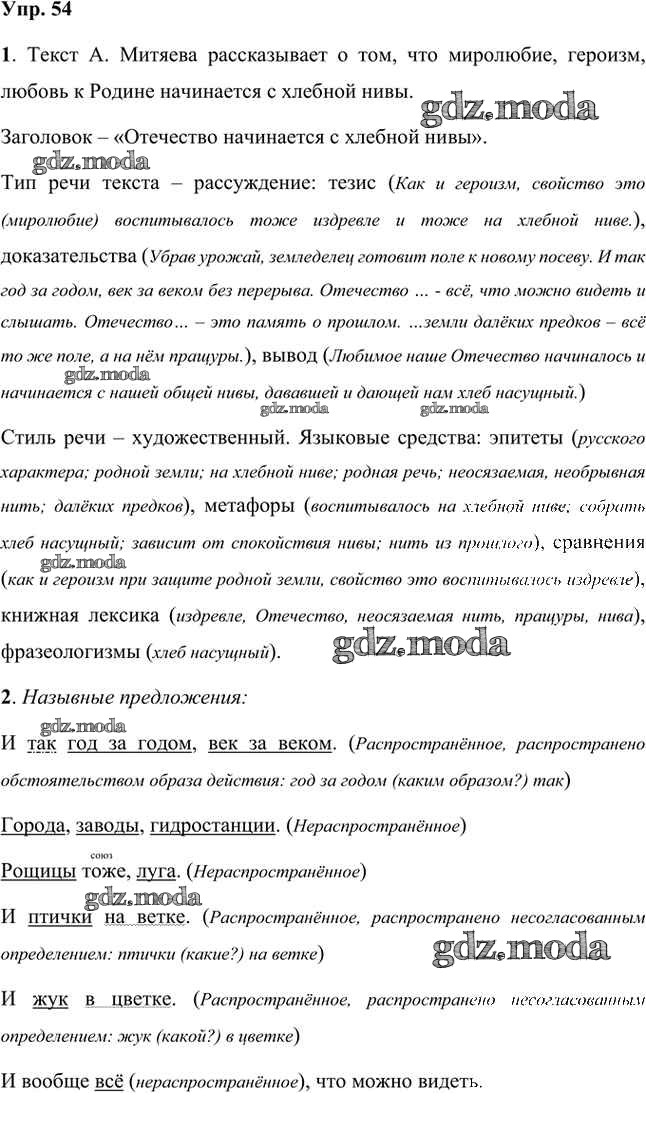 ГДЗ решение к заданию № 54 Русский язык 8 класс Быстрова Е.А. Русское слово 2019 Часть 1, Часть 2 ФГОС бесплатно на гдз.мода!