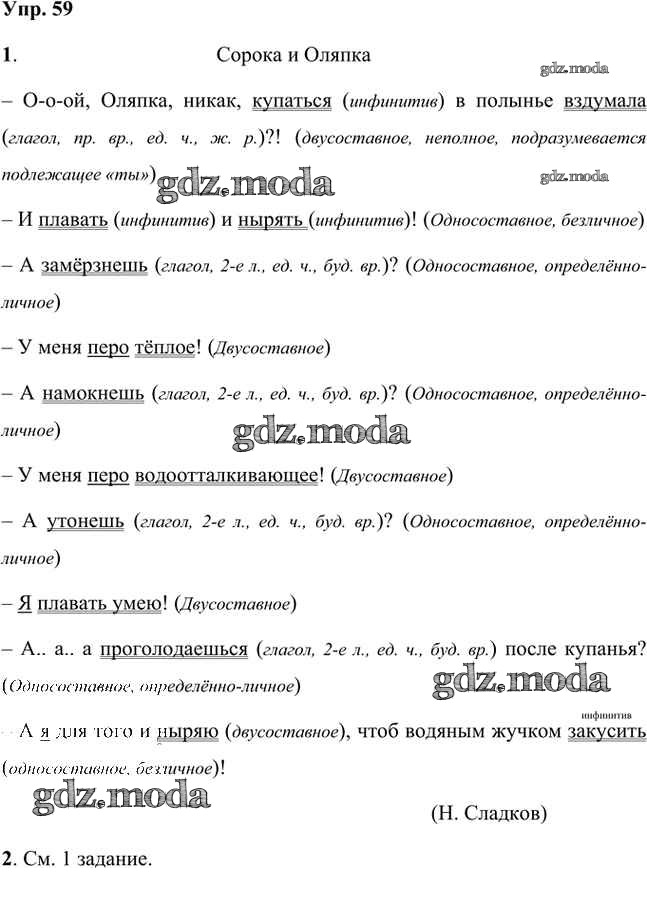 ГДЗ решение к заданию № 59 Русский язык 8 класс Быстрова Е.А. Русское слово 2019 Часть 1, Часть 2 ФГОС бесплатно на гдз.мода!