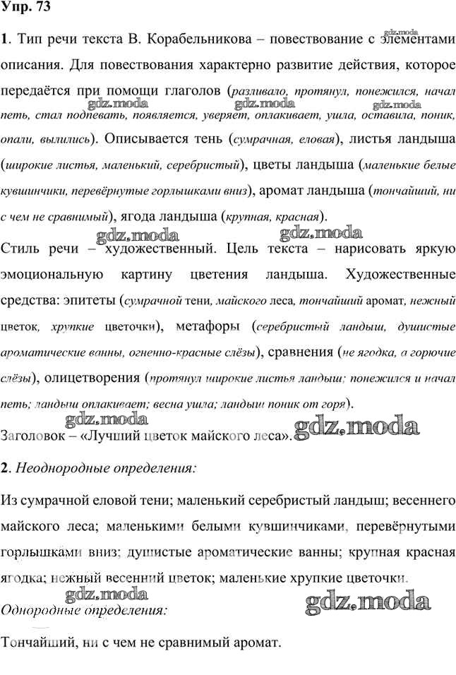 ГДЗ решение к заданию № 73 Русский язык 8 класс Быстрова Е.А. Русское слово 2019 Часть 1, Часть 2 ФГОС бесплатно на гдз.мода!