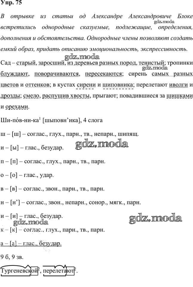 ГДЗ решение к заданию № 75 Русский язык 8 класс Быстрова Е.А. Русское слово 2019 Часть 1, Часть 2 ФГОС бесплатно на гдз.мода!