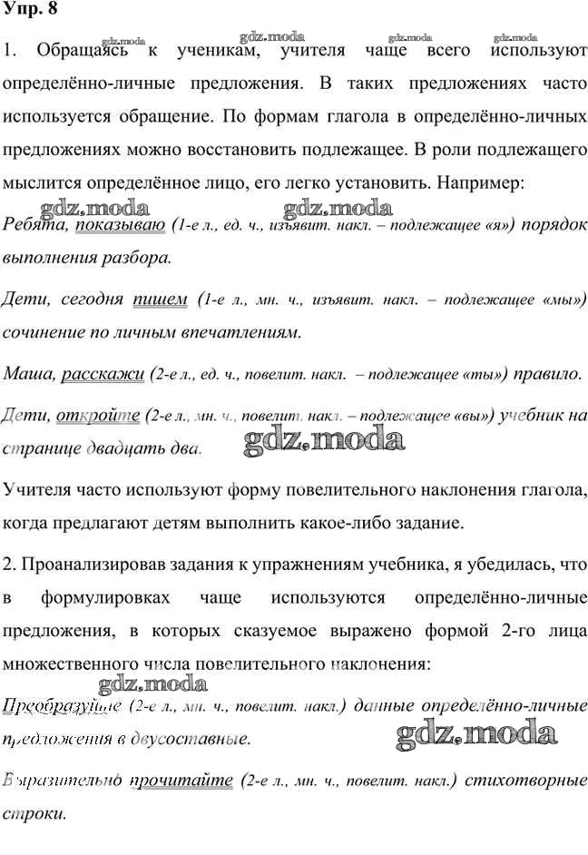 ГДЗ решение к заданию № 8 Русский язык 8 класс Быстрова Е.А. Русское слово 2019 Часть 1, Часть 2 ФГОС бесплатно на гдз.мода!