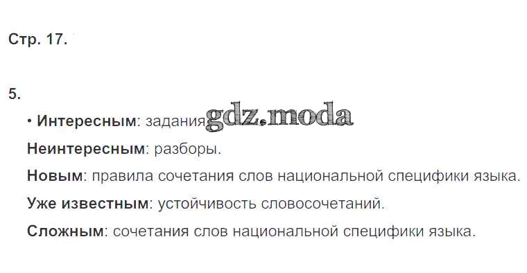 ГДЗ решение к заданию № 17 Русский язык 8 класс рабочая тетрадь Ерохина Е.Л. (к уч. Тростенцовой) Экзамен 2014 ФГОС бесплатно на гдз.мода!