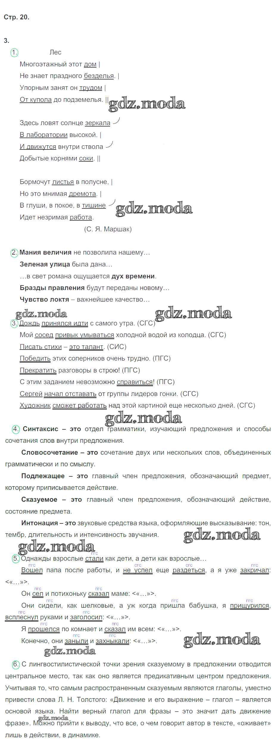 ГДЗ решение к заданию № 20 Русский язык 8 класс рабочая тетрадь Ерохина Е.Л. (к уч. Тростенцовой) Экзамен 2014 ФГОС бесплатно на гдз.мода!