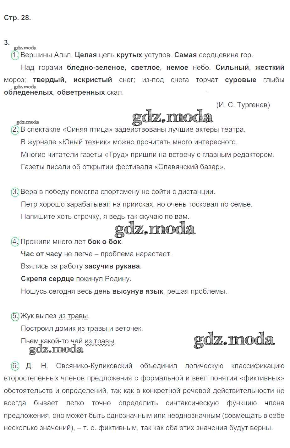 ГДЗ решение к заданию № 28 Русский язык 8 класс рабочая тетрадь Ерохина Е.Л. (к уч. Тростенцовой) Экзамен 2014 ФГОС бесплатно на гдз.мода!