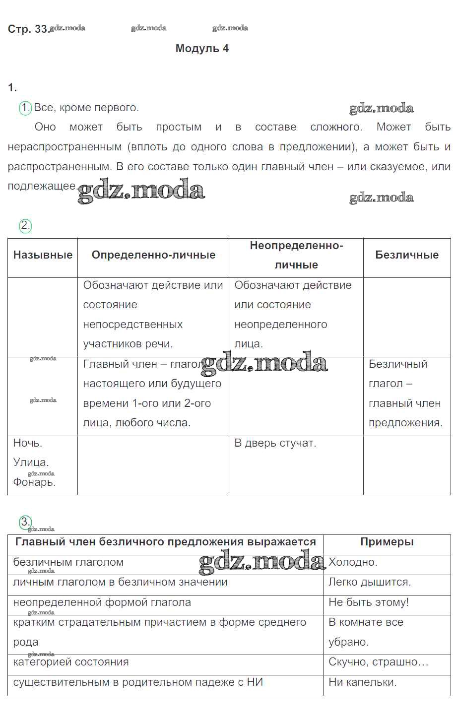 ГДЗ решение к заданию № 33 Русский язык 8 класс рабочая тетрадь Ерохина Е.Л. (к уч. Тростенцовой) Экзамен 2014 ФГОС бесплатно на гдз.мода!