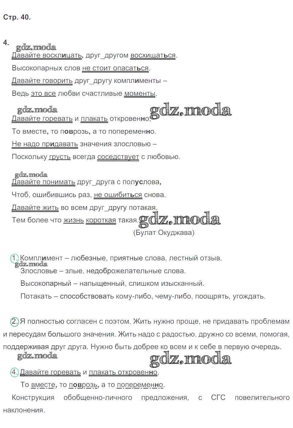 ГДЗ решение к заданию № 40 Русский язык 8 класс рабочая тетрадь Ерохина Е.Л. (к уч. Тростенцовой) Экзамен 2014 ФГОС бесплатно на гдз.мода!