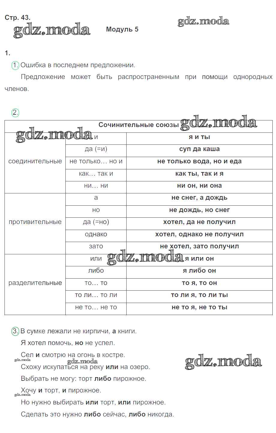 ГДЗ решение к заданию № 43 Русский язык 8 класс рабочая тетрадь Ерохина Е.Л. (к уч. Тростенцовой) Экзамен 2014 ФГОС бесплатно на гдз.мода!