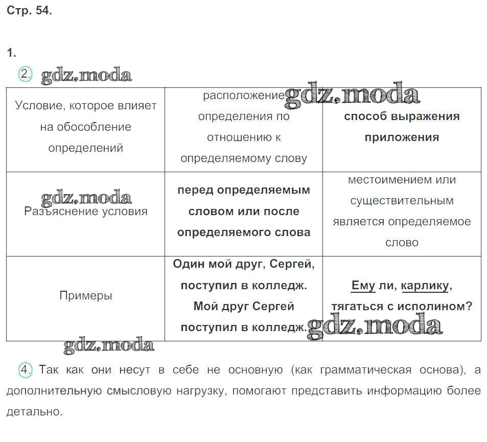 ГДЗ решение к заданию № 54 Русский язык 8 класс рабочая тетрадь Ерохина Е.Л. (к уч. Тростенцовой) Экзамен 2014 ФГОС бесплатно на гдз.мода!