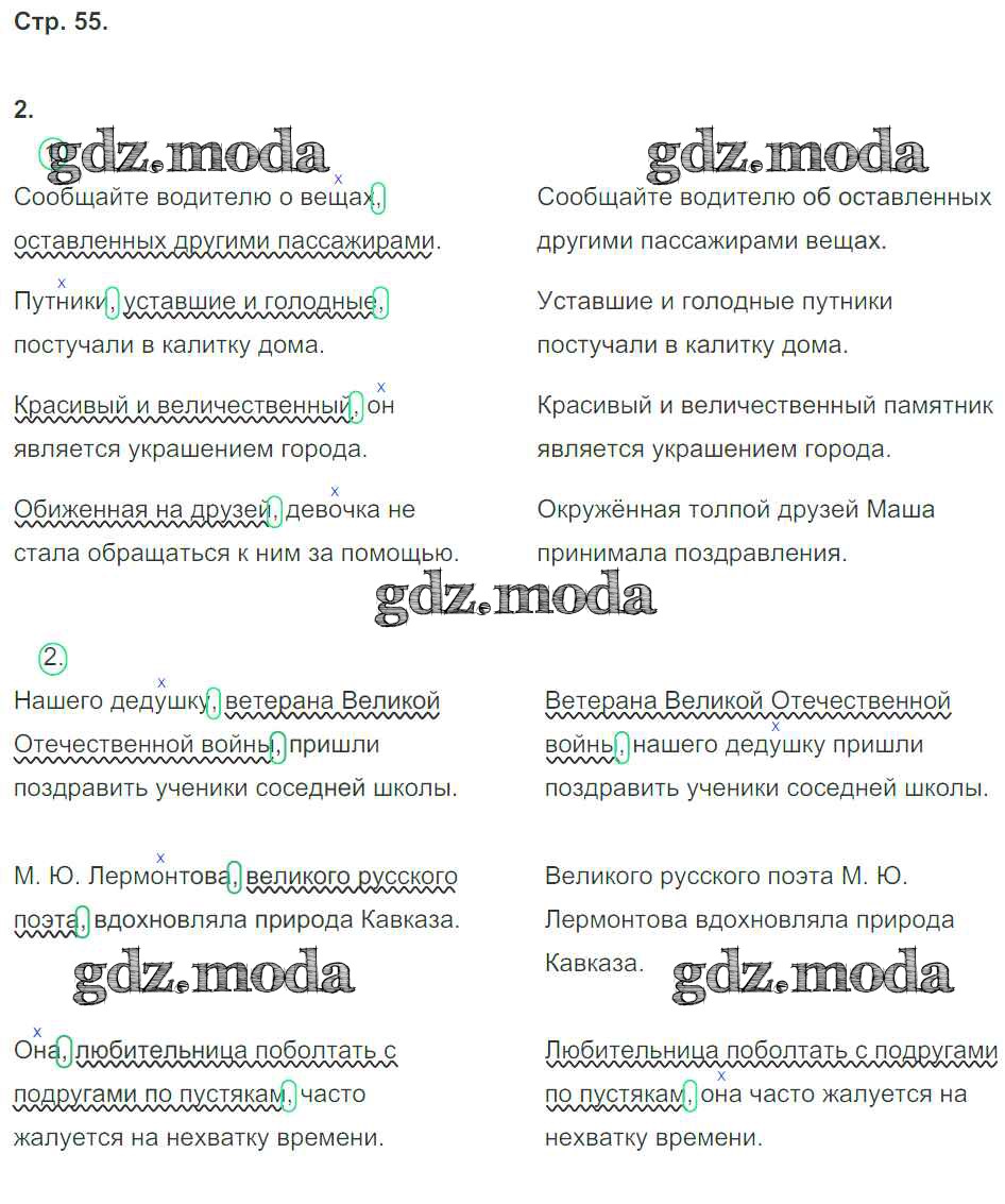 ГДЗ решение к заданию № 55 Русский язык 8 класс рабочая тетрадь Ерохина Е.Л. (к уч. Тростенцовой) Экзамен 2014 ФГОС бесплатно на гдз.мода!