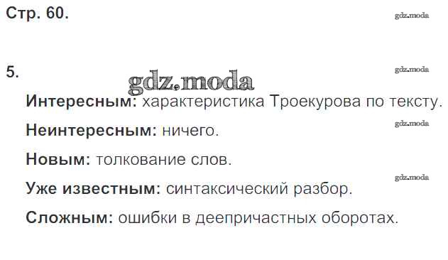 ГДЗ решение к заданию № 60 Русский язык 8 класс рабочая тетрадь Ерохина Е.Л. (к уч. Тростенцовой) Экзамен 2014 ФГОС бесплатно на гдз.мода!