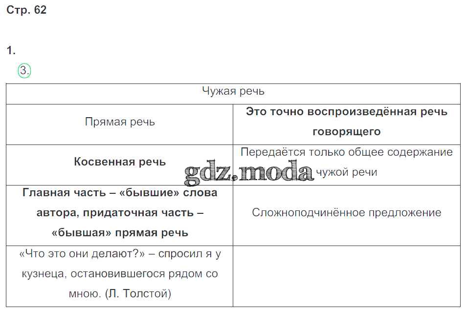 ГДЗ решение к заданию № 62 Русский язык 8 класс рабочая тетрадь Ерохина Е.Л. (к уч. Тростенцовой) Экзамен 2014 ФГОС бесплатно на гдз.мода!