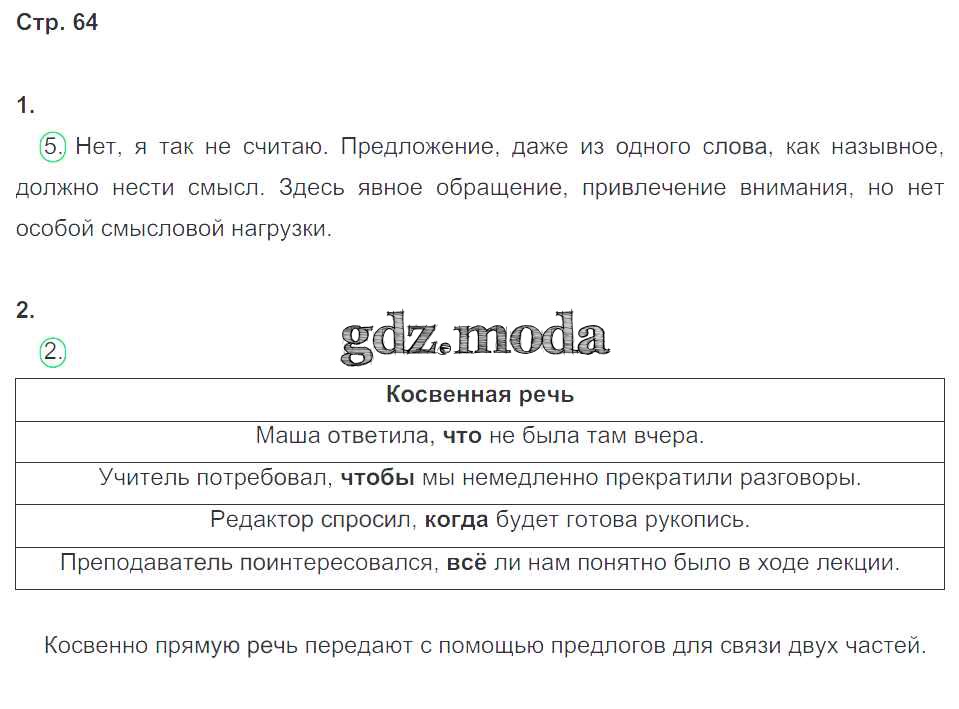 ГДЗ решение к заданию № 64 Русский язык 8 класс рабочая тетрадь Ерохина Е.Л. (к уч. Тростенцовой) Экзамен 2014 ФГОС бесплатно на гдз.мода!