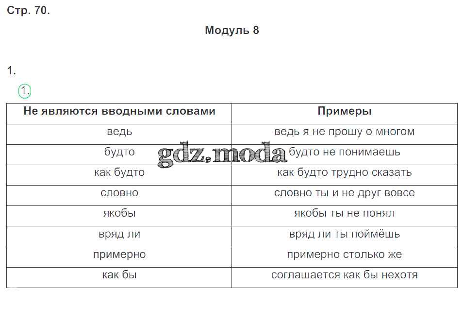 ГДЗ решение к заданию № 70 Русский язык 8 класс рабочая тетрадь Ерохина Е.Л. (к уч. Тростенцовой) Экзамен 2014 ФГОС бесплатно на гдз.мода!