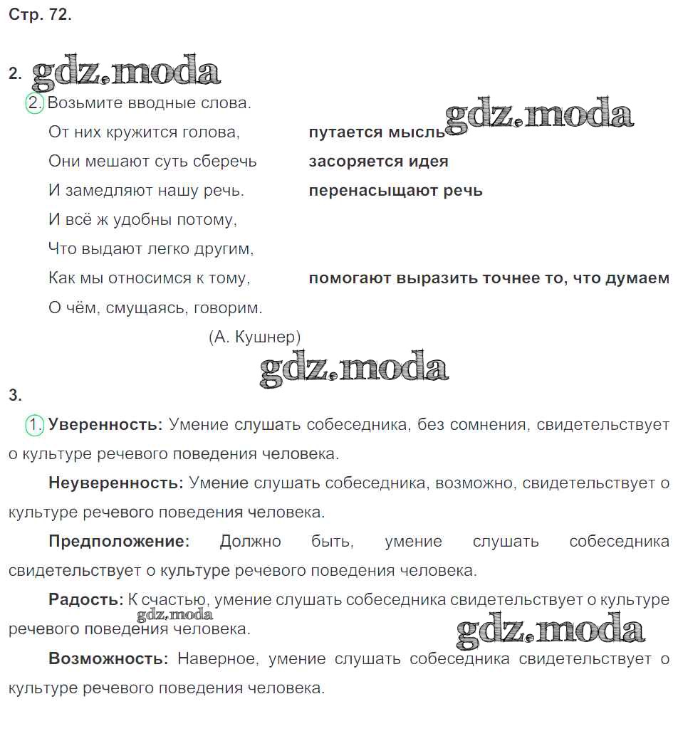 ГДЗ решение к заданию № 72 Русский язык 8 класс рабочая тетрадь Ерохина Е.Л. (к уч. Тростенцовой) Экзамен 2014 ФГОС бесплатно на гдз.мода!