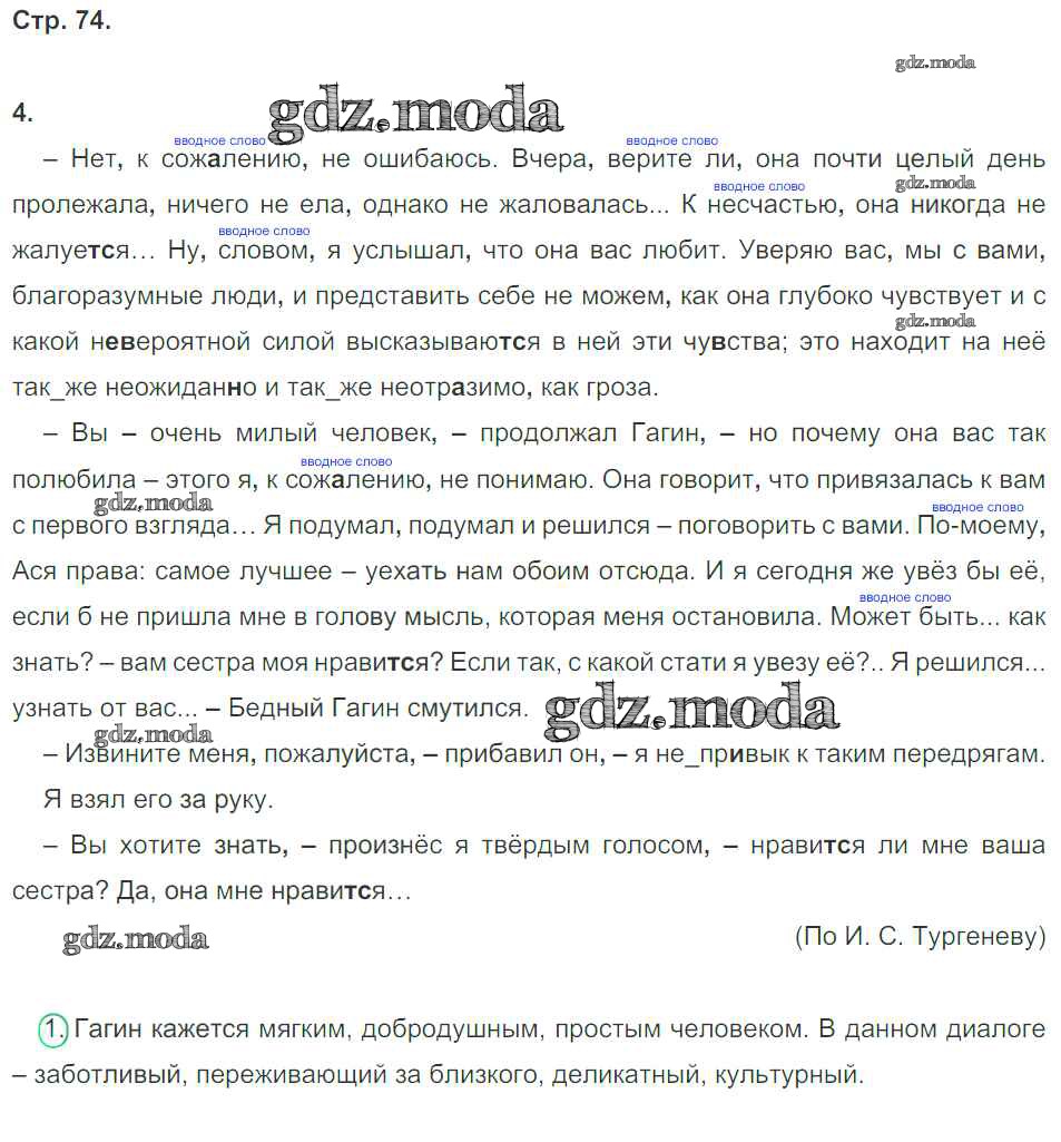 ГДЗ решение к заданию № 74 Русский язык 8 класс рабочая тетрадь Ерохина Е.Л. (к уч. Тростенцовой) Экзамен 2014 ФГОС бесплатно на гдз.мода!