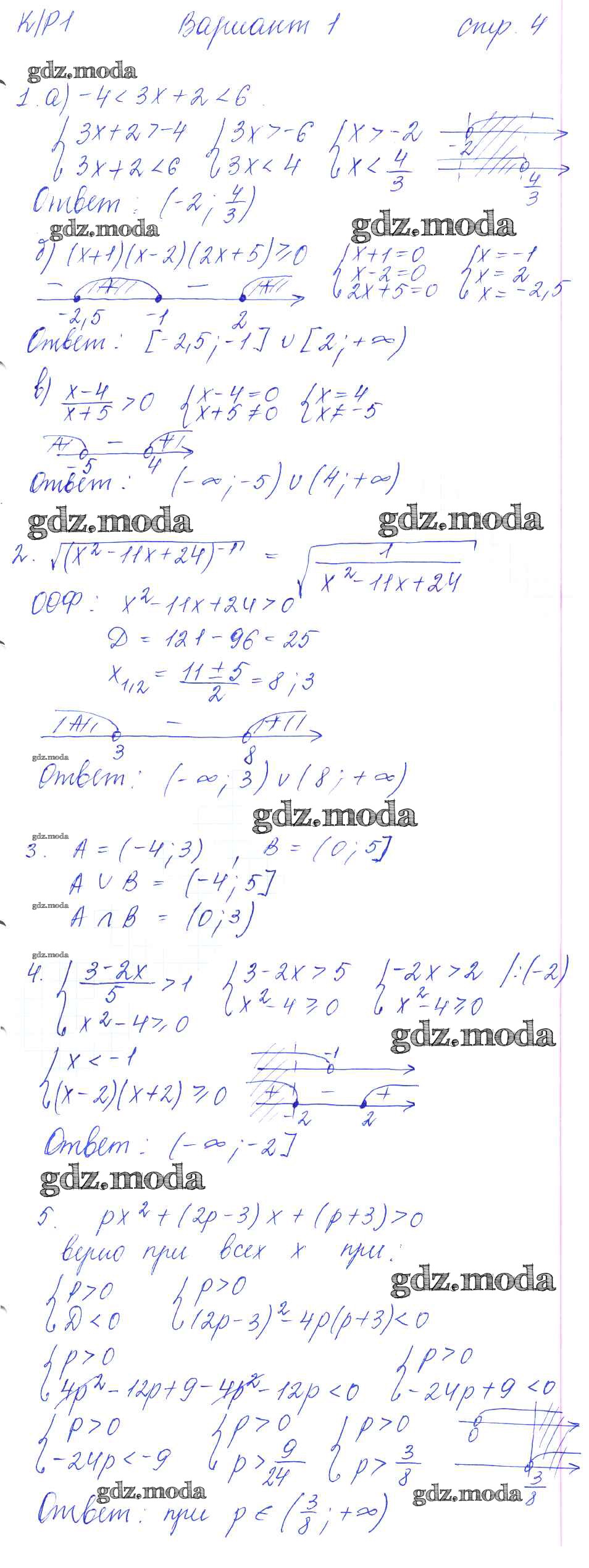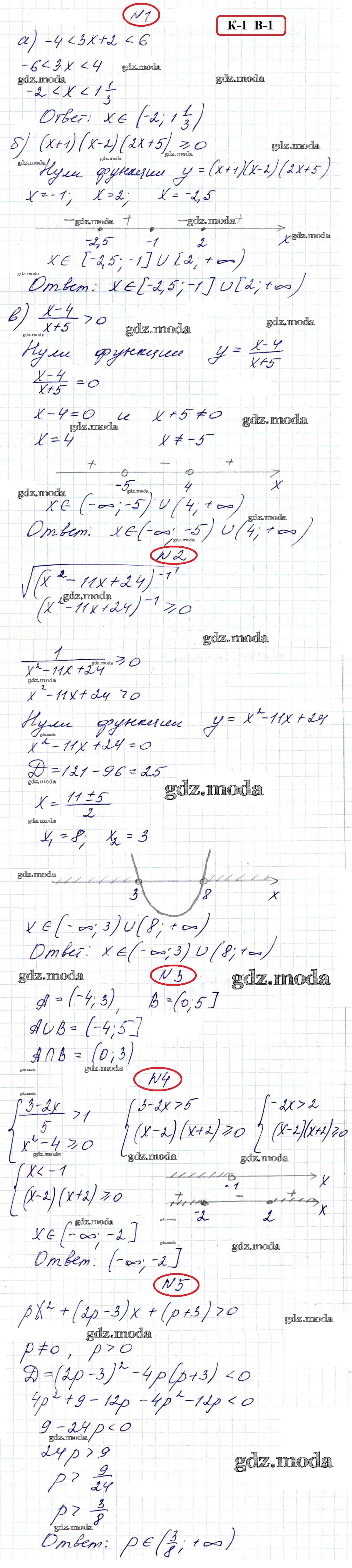 ОТВЕТ на задание № вариант №1 Контрольные работы по Алгебре 9 класс Александрова Базовый уровень
