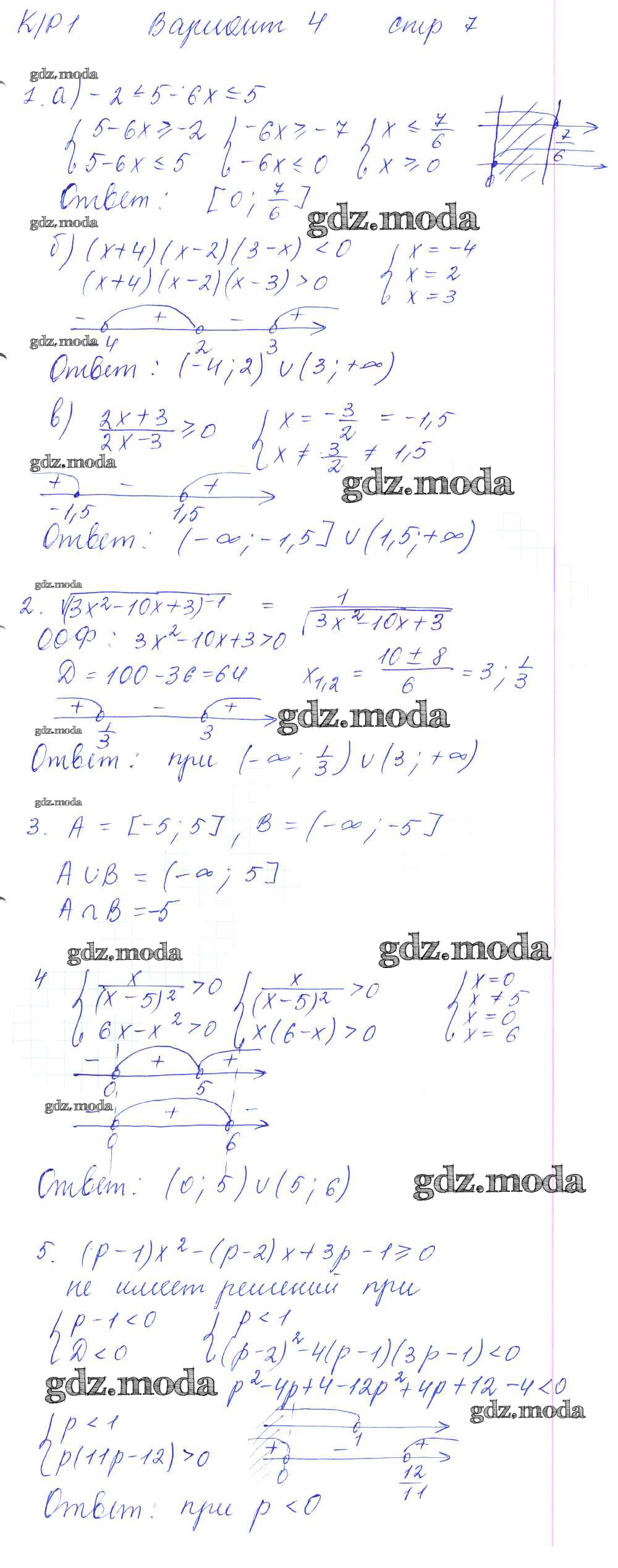 ОТВЕТ на задание № вариант №4 Контрольные работы по Алгебре 9 класс Александрова Базовый уровень
