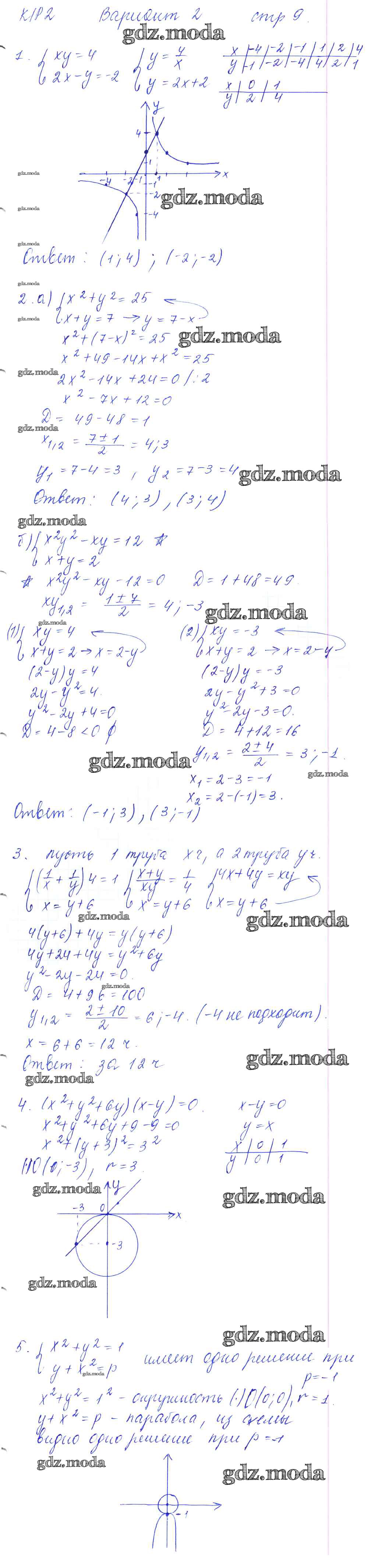ОТВЕТ на задание № вариант №2 Контрольные работы по Алгебре 9 класс Александрова Базовый уровень