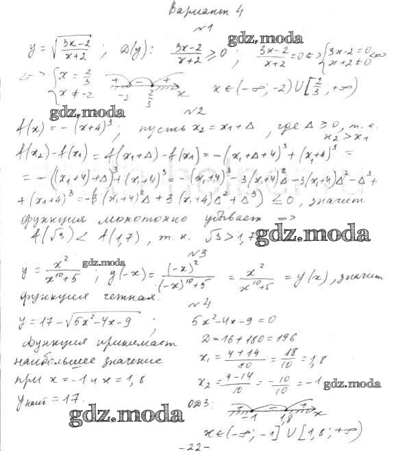 ОТВЕТ на задание № вариант №4 Контрольные работы по Алгебре 9 класс Александрова Базовый уровень