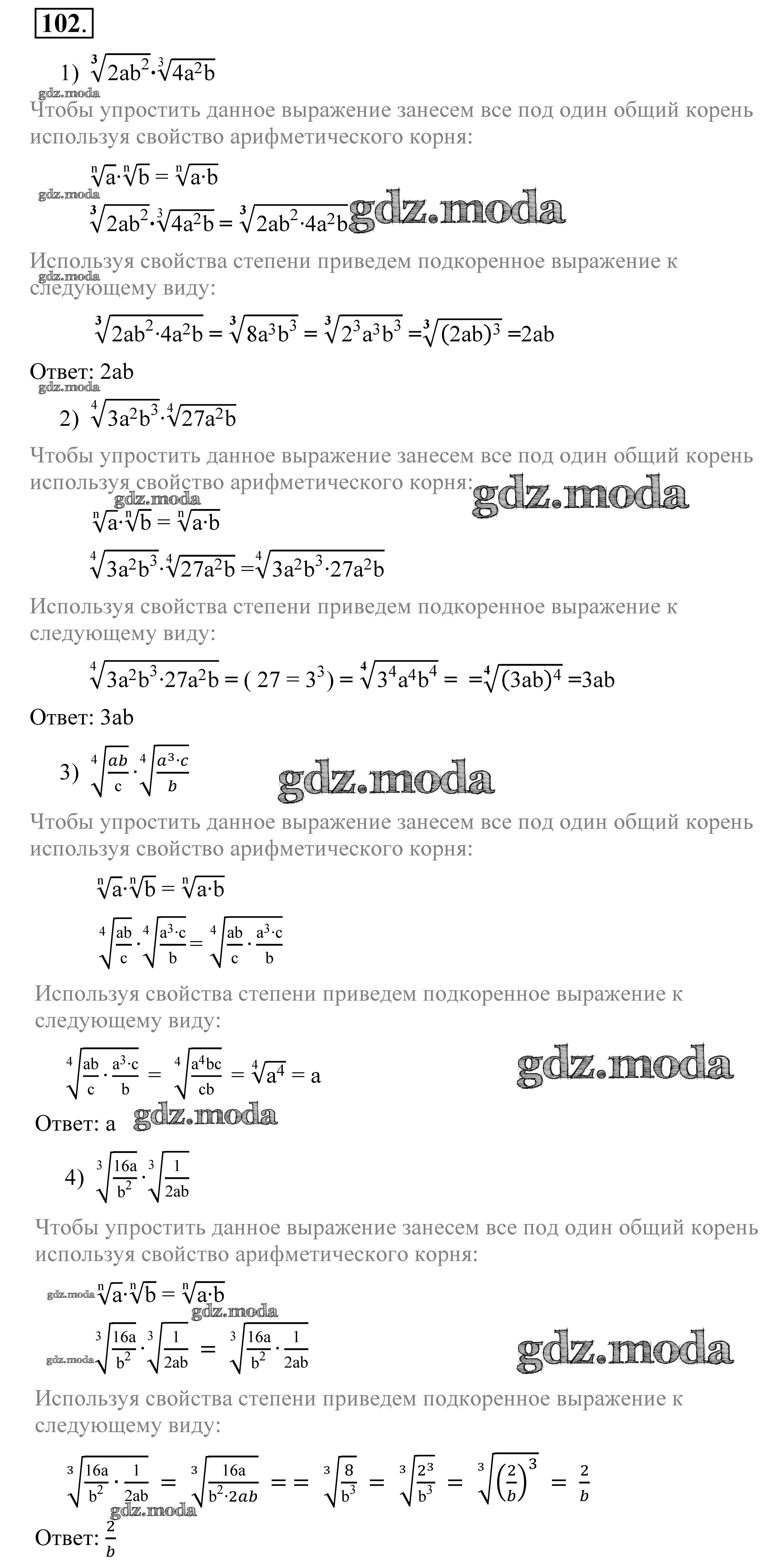 ГДЗ решение к заданию № 102 Алгебра 9 класс Алимов Ш. А. Просвещение 2014 ФГОС бесплатно на гдз.мода!