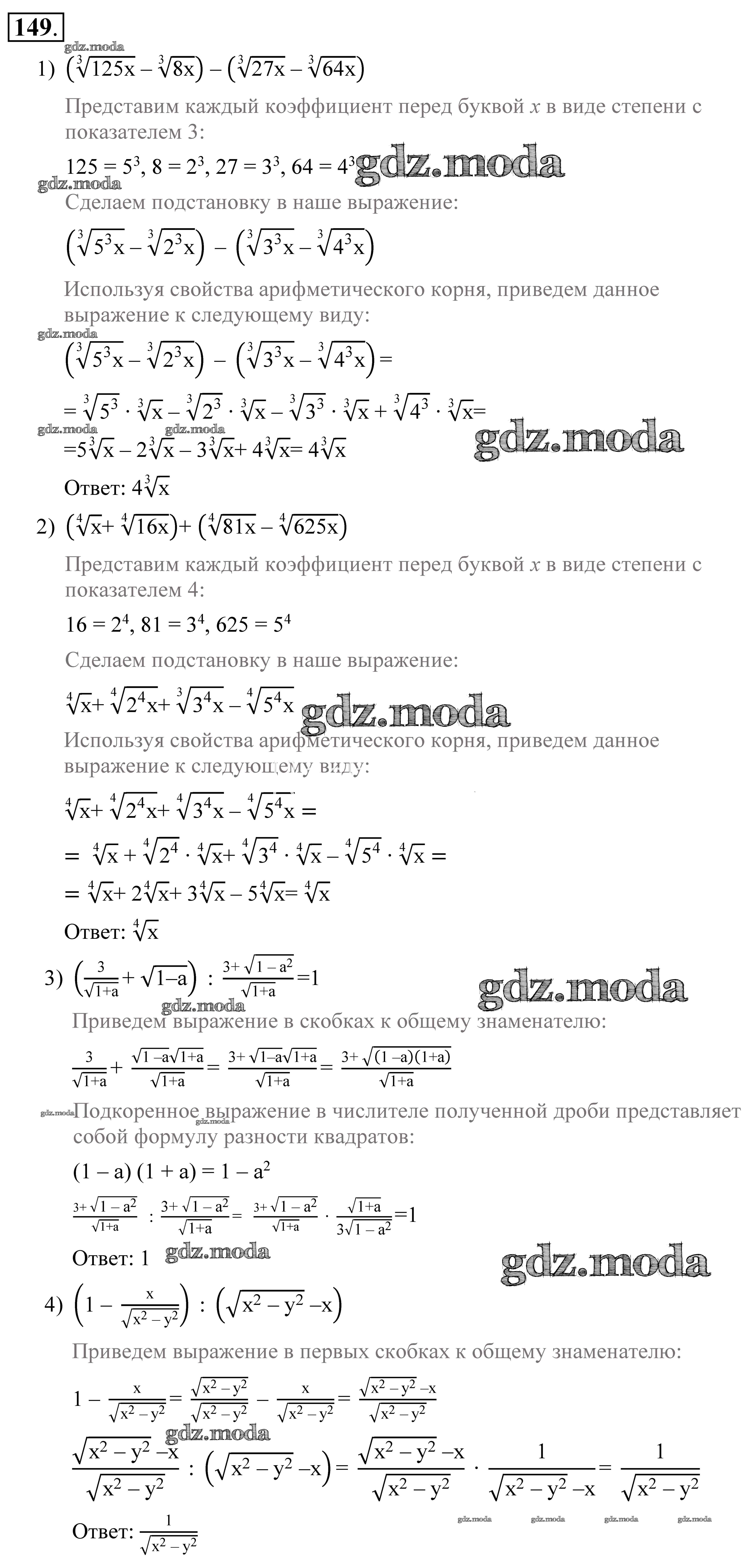 ГДЗ решение к заданию № 149 Алгебра 9 класс Алимов Ш. А. Просвещение 2014 ФГОС бесплатно на гдз.мода!