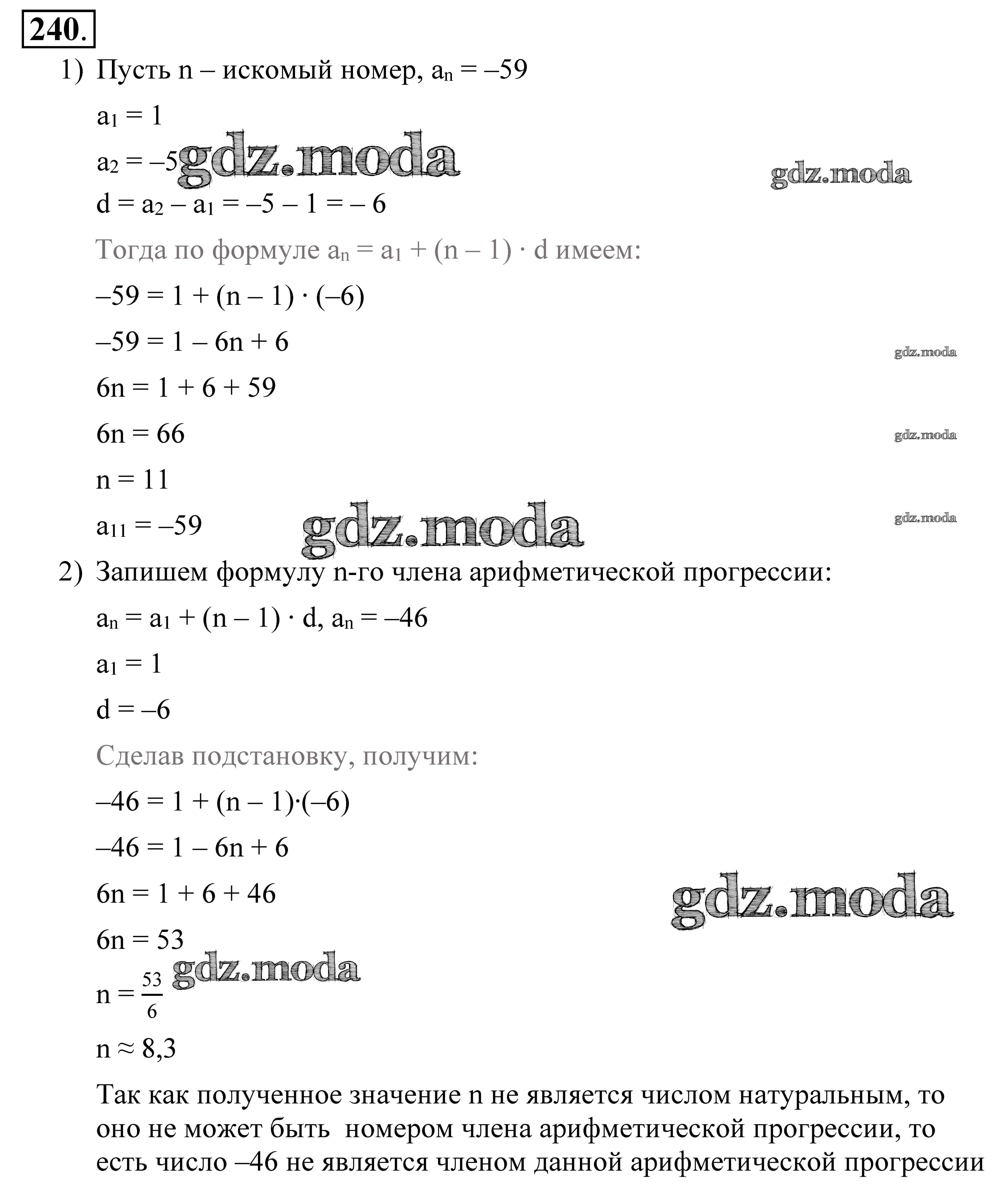 ГДЗ решение к заданию № 240 Алгебра 9 класс Алимов Ш. А. Просвещение 2014 ФГОС бесплатно на гдз.мода!