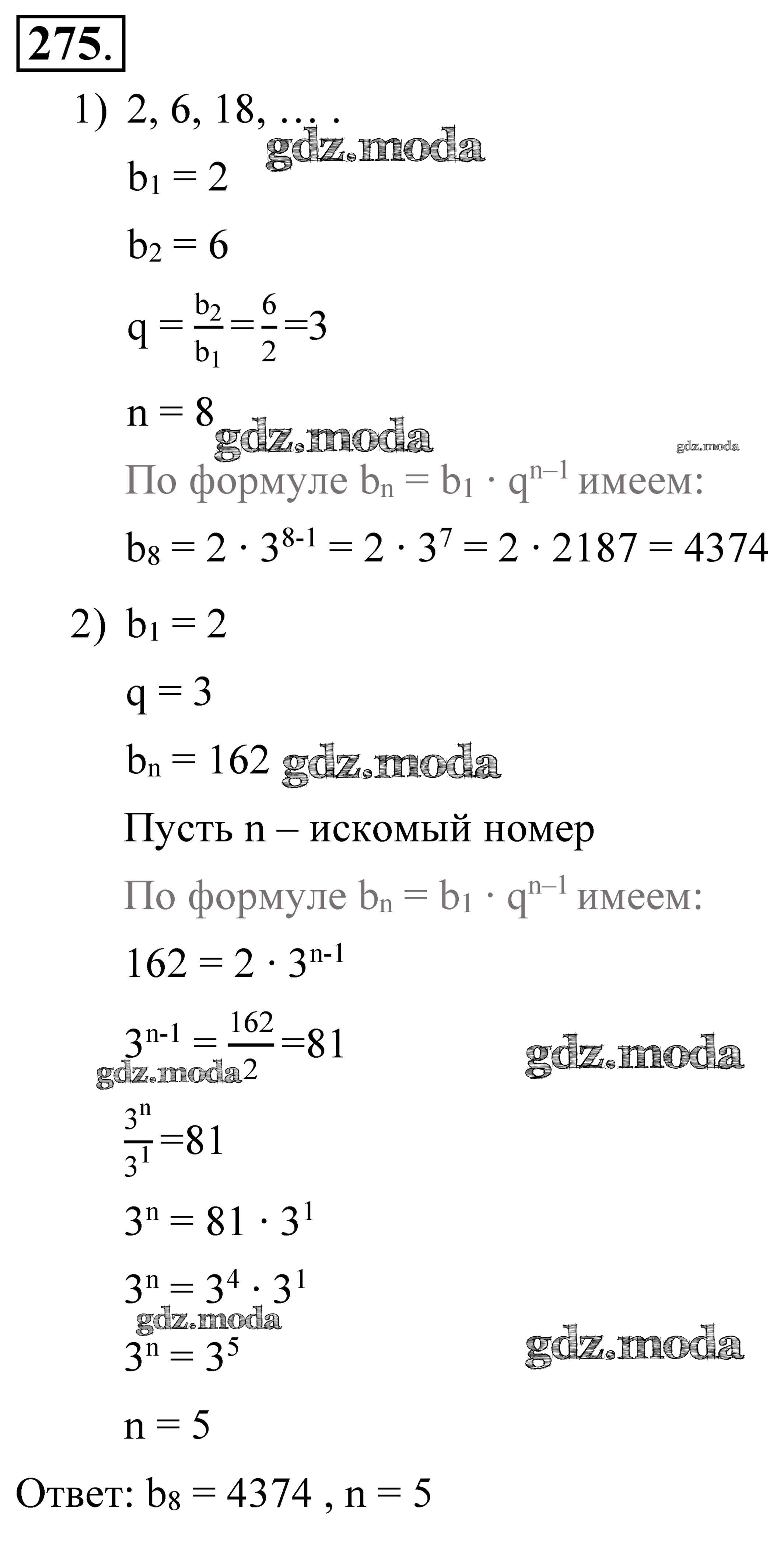 ГДЗ решение к заданию № 275 Алгебра 9 класс Алимов Ш. А. Просвещение 2014 ФГОС бесплатно на гдз.мода!