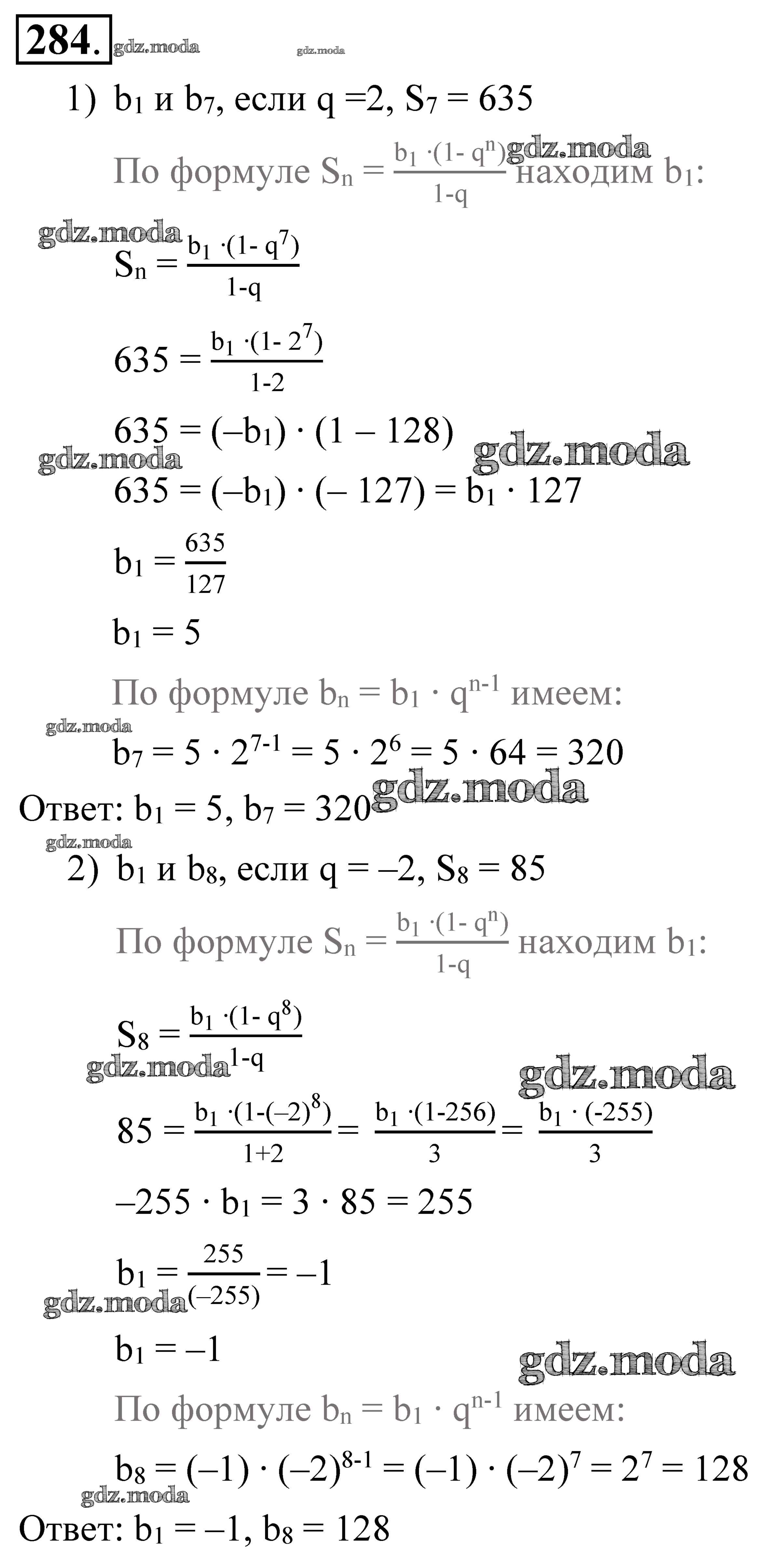 ГДЗ решение к заданию № 284 Алгебра 9 класс Алимов Ш. А. Просвещение 2014 ФГОС бесплатно на гдз.мода!