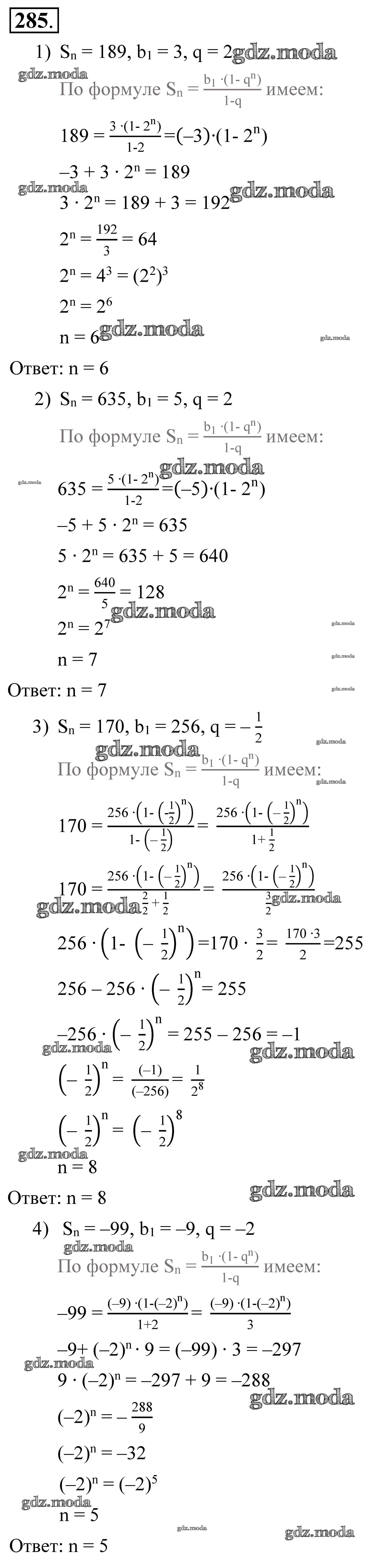 ГДЗ решение к заданию № 285 Алгебра 9 класс Алимов Ш. А. Просвещение 2014 ФГОС бесплатно на гдз.мода!