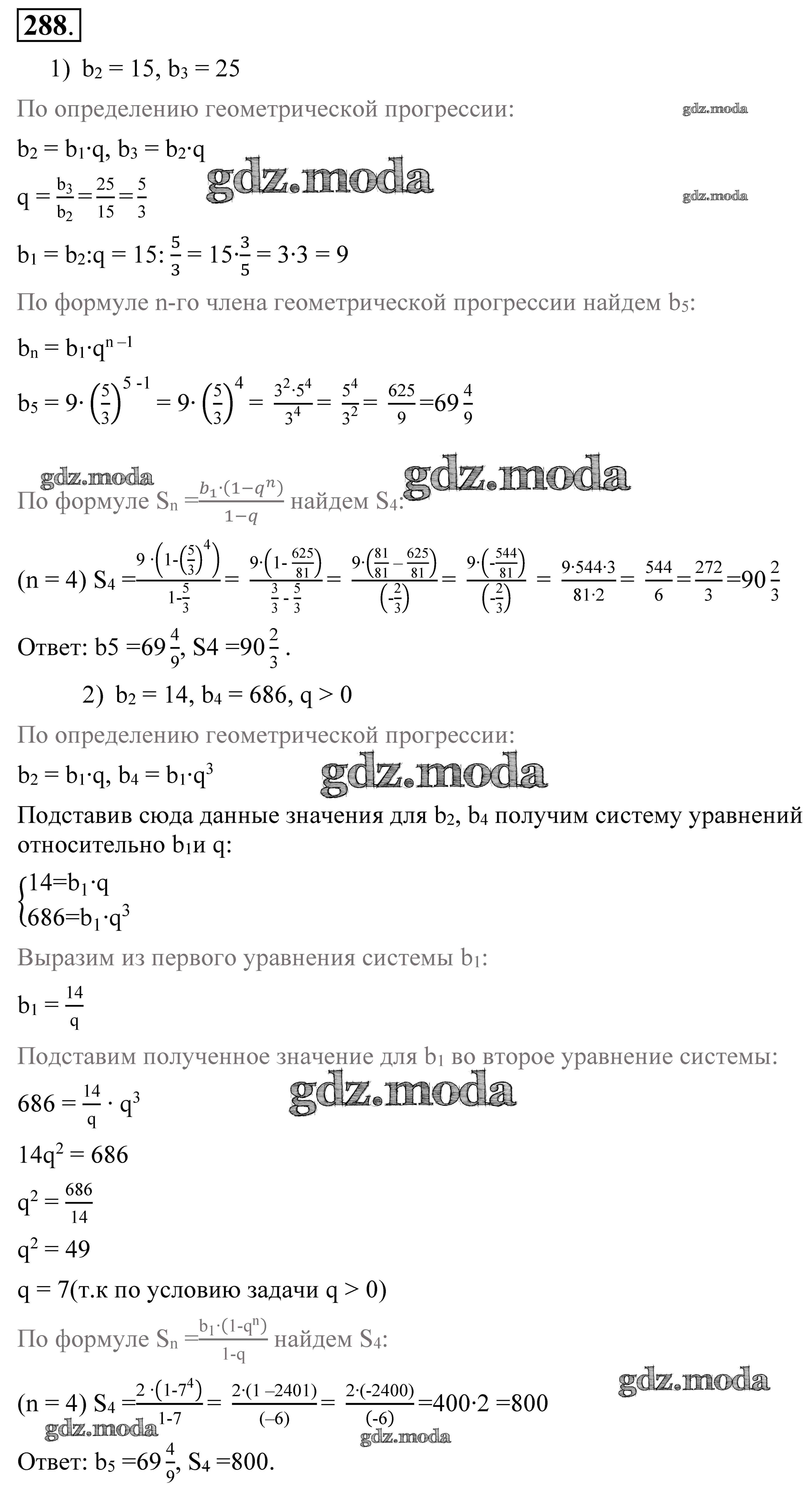 ГДЗ решение к заданию № 288 Алгебра 9 класс Алимов Ш. А. Просвещение 2014 ФГОС бесплатно на гдз.мода!