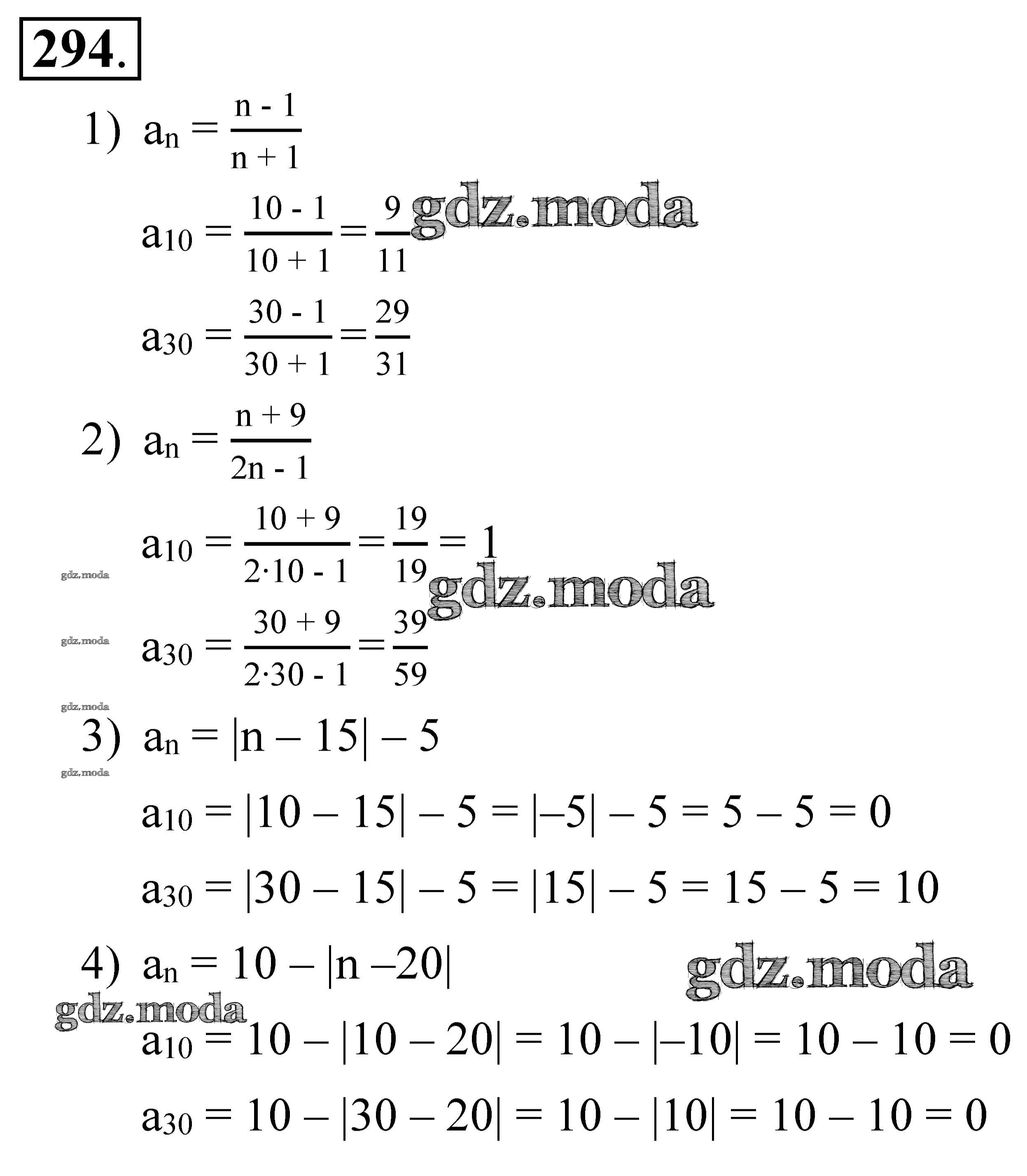 ОТВЕТ на задание № 294 Учебник по Алгебре 9 класс Алимов