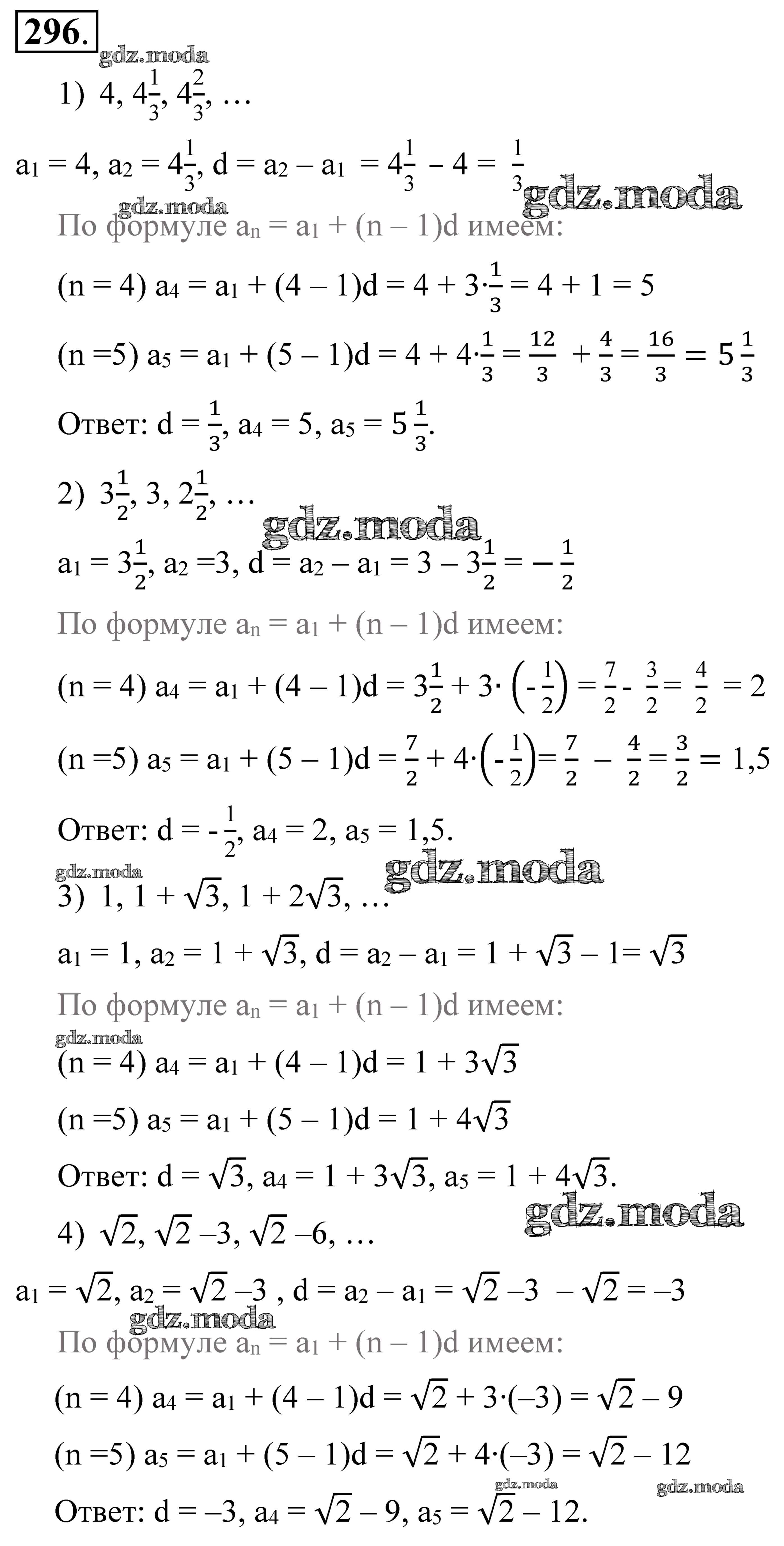 ГДЗ решение к заданию № 296 Алгебра 9 класс Алимов Ш. А. Просвещение 2014 ФГОС бесплатно на гдз.мода!