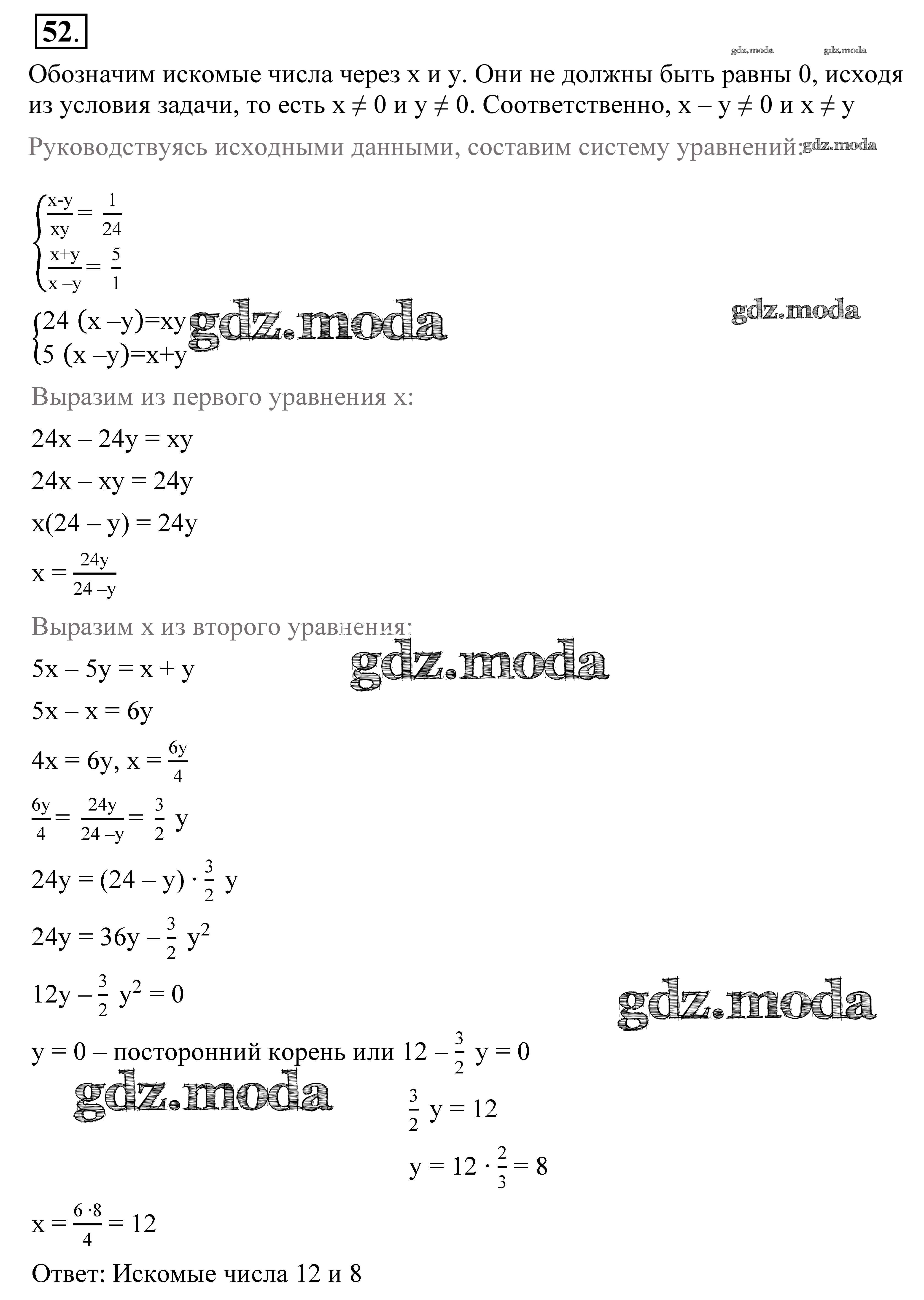 ГДЗ решение к заданию № 52 Алгебра 9 класс Алимов Ш. А. Просвещение 2014 ФГОС бесплатно на гдз.мода!
