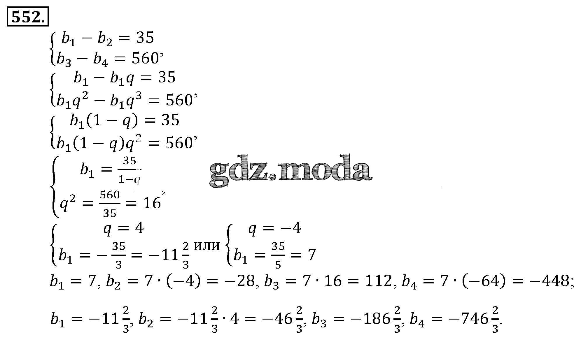 ГДЗ решение к заданию № 552 Алгебра 9 класс Алимов Ш. А. Просвещение 2014 ФГОС бесплатно на гдз.мода!