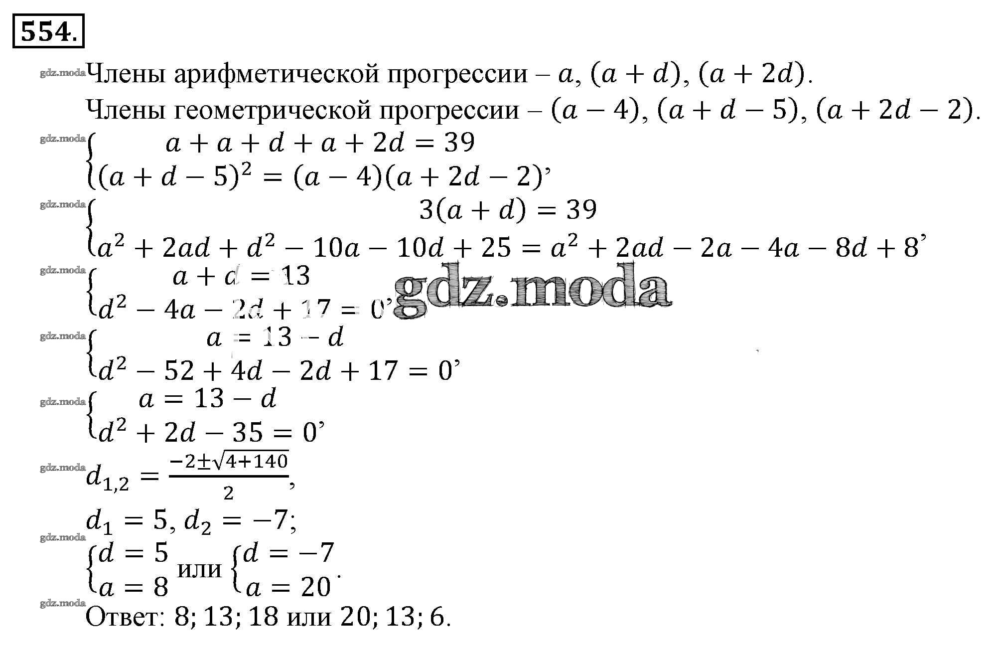 ОТВЕТ на задание № 554 Учебник по Алгебре 9 класс Алимов